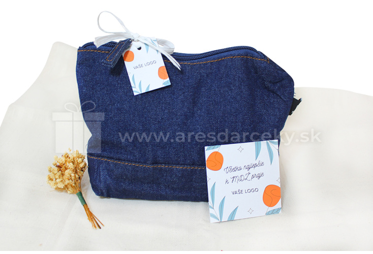 - kozmetická taštička na zips, vyrobená z recyklova bavlnenej džínsoviny a bavllny, rozmery: 21.5x5x15cm