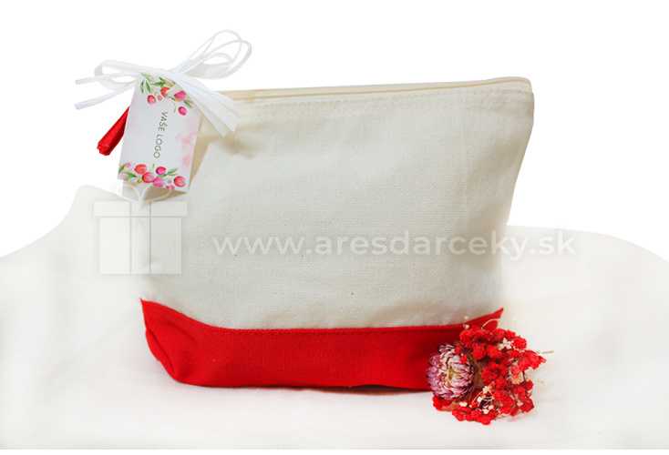 - kozmetická taštička z bavlny a farebným dnom (v rôznych farbách), so zipsom, rozmery: 21.5X5X15CM
