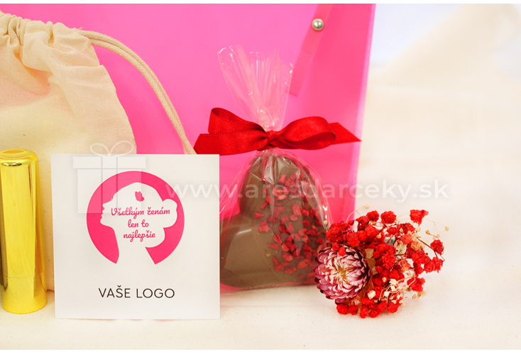 - pralinkové srdiečko z mliečnej čokolády, s maslovo - malinovým kremom, posypane lyofilizovanymi malinami. Nálepka s logom