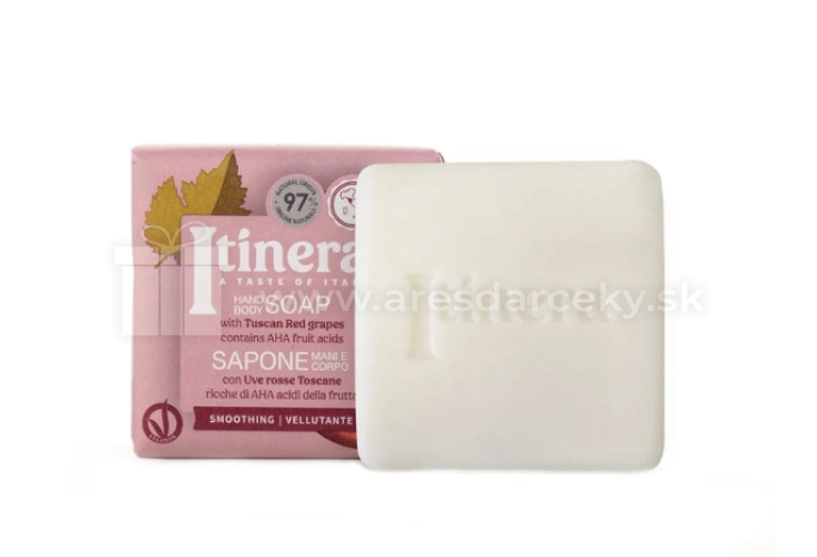 - prírodné tuhé mydlo na ruky a telo, 100gr, rôzne druhy (ovsené, červ.hrozno, jablko),yn. Itinera, 100% recykl. Obal, vegan&cruelty free